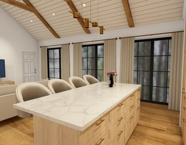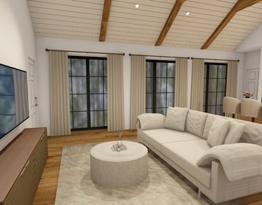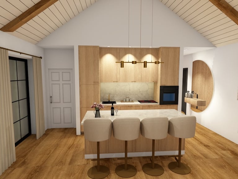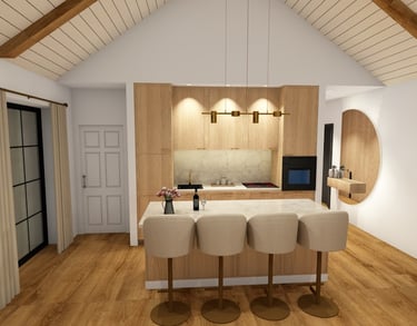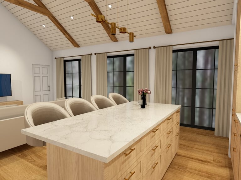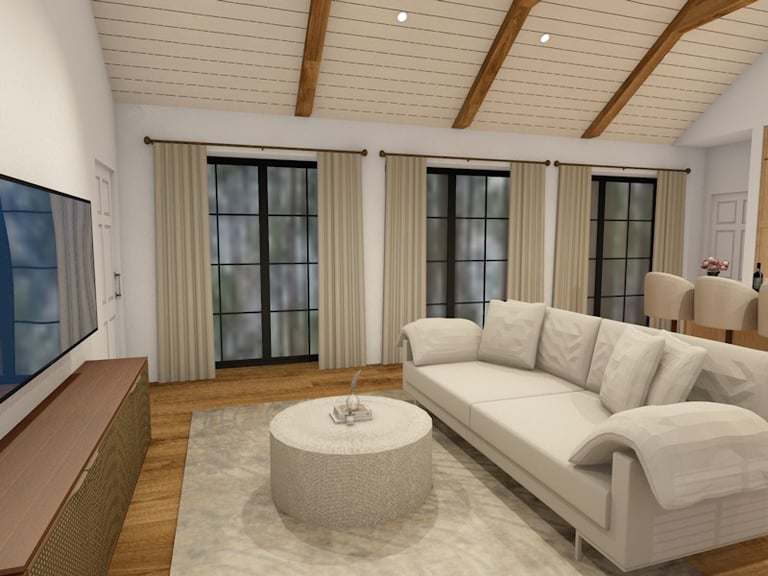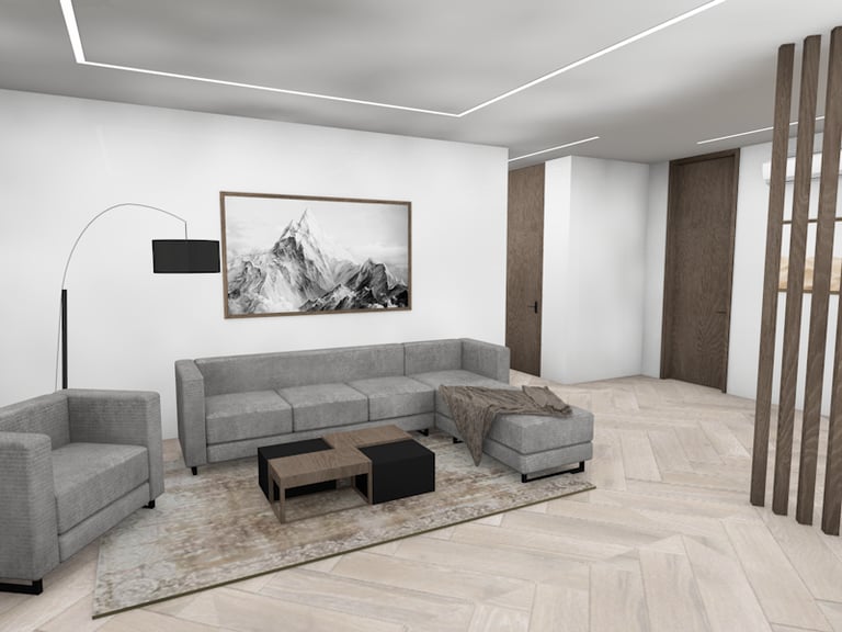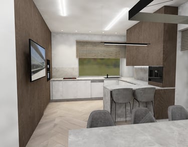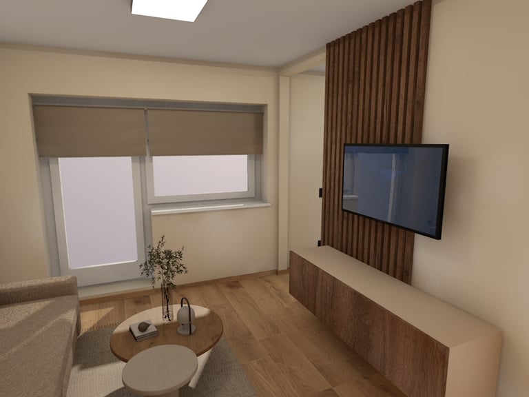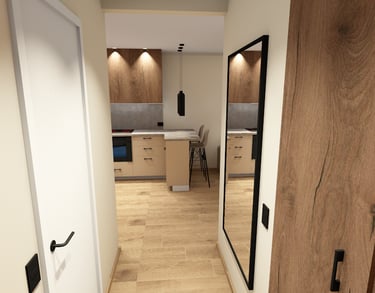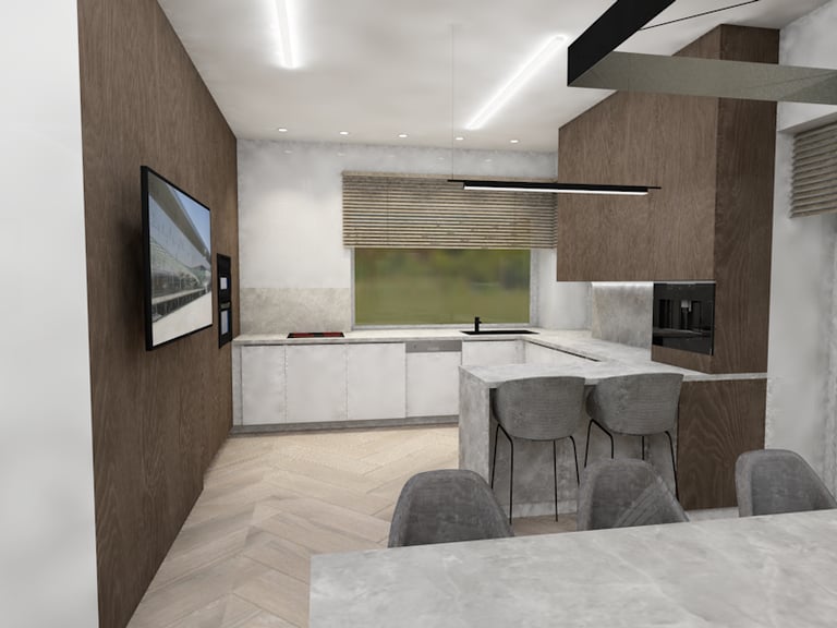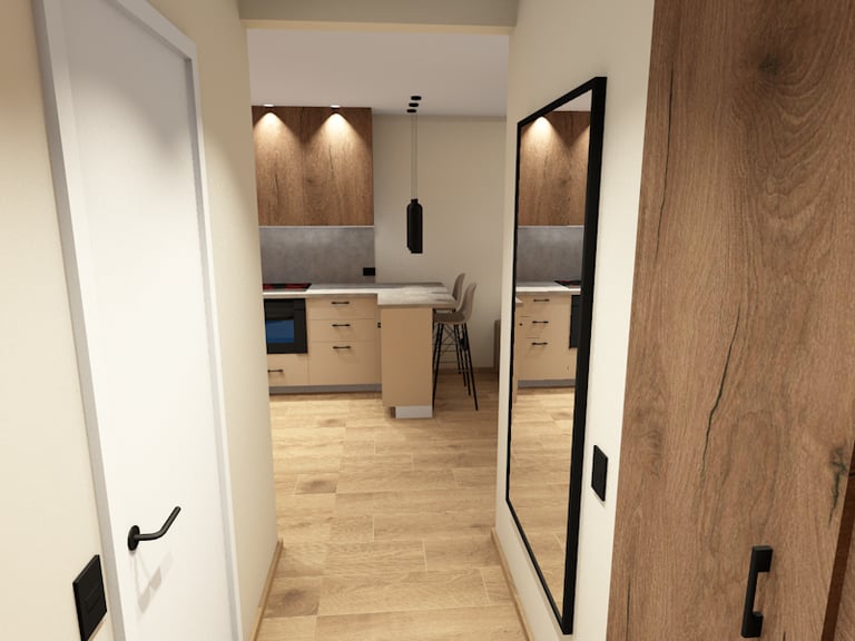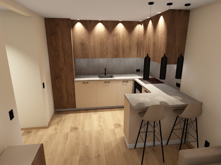 Svetainės ir virtuvės erdvių atliktos vizualizacijos